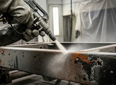 Precision blasting removes rust and old coatings to prepare surfaces perfectly.